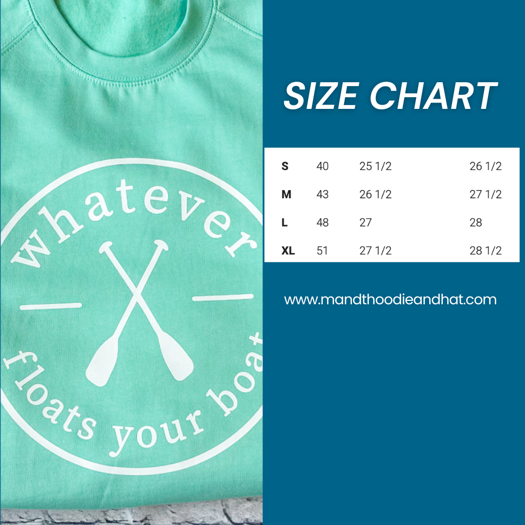 Stay cozy and stylish on the lake with our Whatever Floats Your Boat Graphic Crew. Made with high-quality materials, this Teal-colored top is perfect for any adventure. Plus, its fun graphic design adds a touch of personality to your look. The bold, playful graphic adds personality while the classic cut makes it easy to style. Throw it on after a swim, layer it under a jacket, or wear it all day—whatever floats your boat. Order now, so you don't miss out!