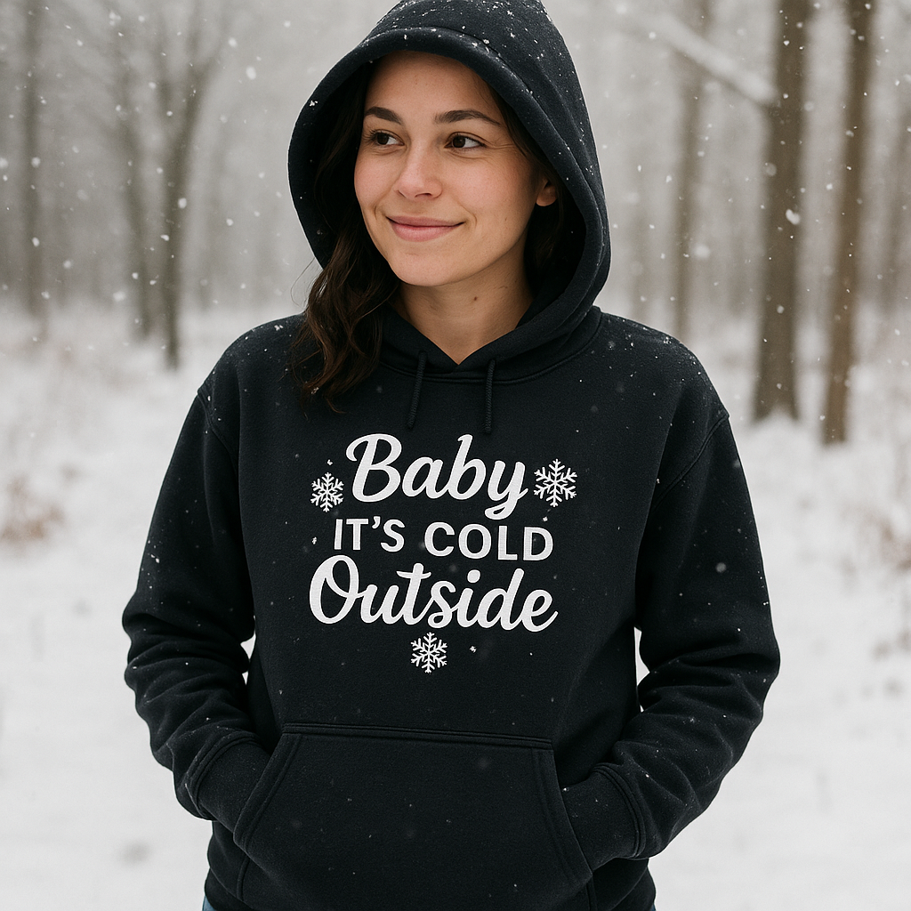 Cold weather has officially arrived, and what better way to bundle up than with our Baby It’s Cold Outside hoodie—now available on a sleek black Jerzee sweatshirt! Cozy, versatile, and oh-so-festive, this hoodie is the perfect piece for all your winter moments.